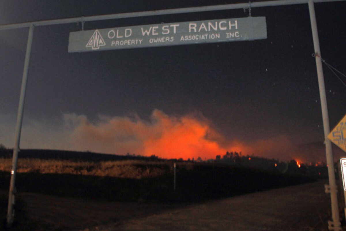 The fire erupted Tuesday about 70 miles north of Los Angeles and threatens the entire town of Old West Ranch in the eastern foothills of the Tehachapi Mountains.