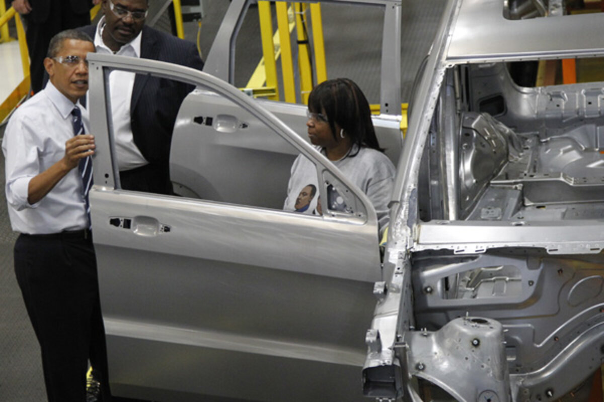 The announcement was made at the Jefferson North factory in Detroit where the Jeep Grand Cherokee is made. Obama toured the plant and later Friday was to visit a General Motors factory that makes the Chevrolet Volt rechargeable electric car.