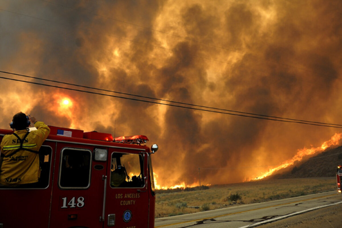 Orange flames exploded through dry grasses, jumped roads and sped across the rural foothills that connect Los Angeles to the high desert.