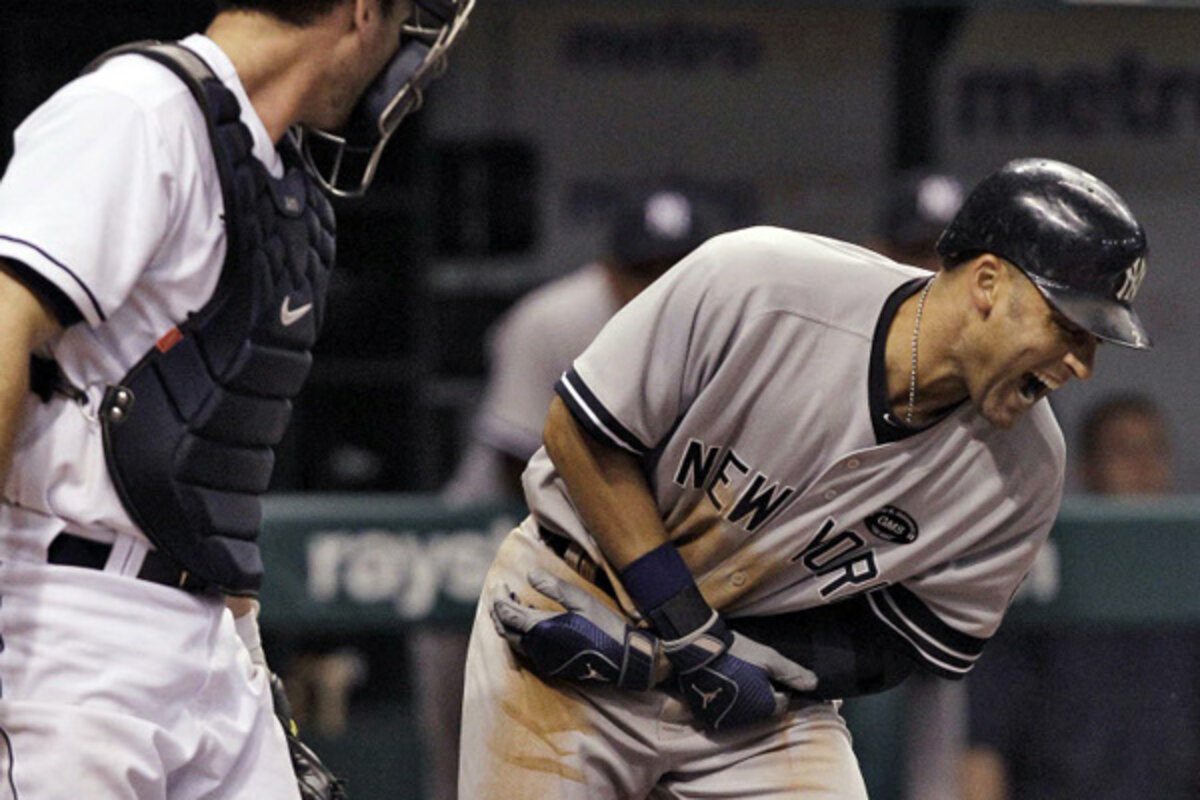 Howling, hopping and seemingly hurting, Jeter 鈥 who has a cameo in the Will Ferrell comedy "The Other Guys" 鈥 even got the team trainer to examine his left arm. And then the All-Star often hailed as a model of good sportsmanship took his base.