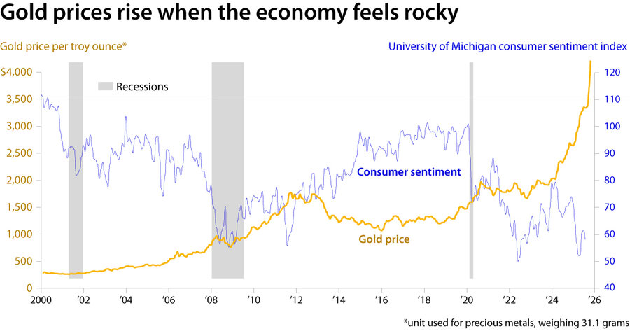 Bloomberg, Datastream, ICE Benchmark Administration, World Gold Council, University of Michigan consumer sentiment index