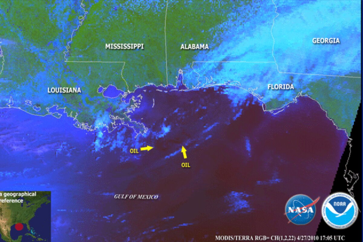 Two NASA satellites with the Moderate Resolution Imaging Spectroradiometer (MODIS) instrument onboard have already given responders a multispectral "God's-eye" view of the spreading blemish of crude oil in the Gulf of Mexico.