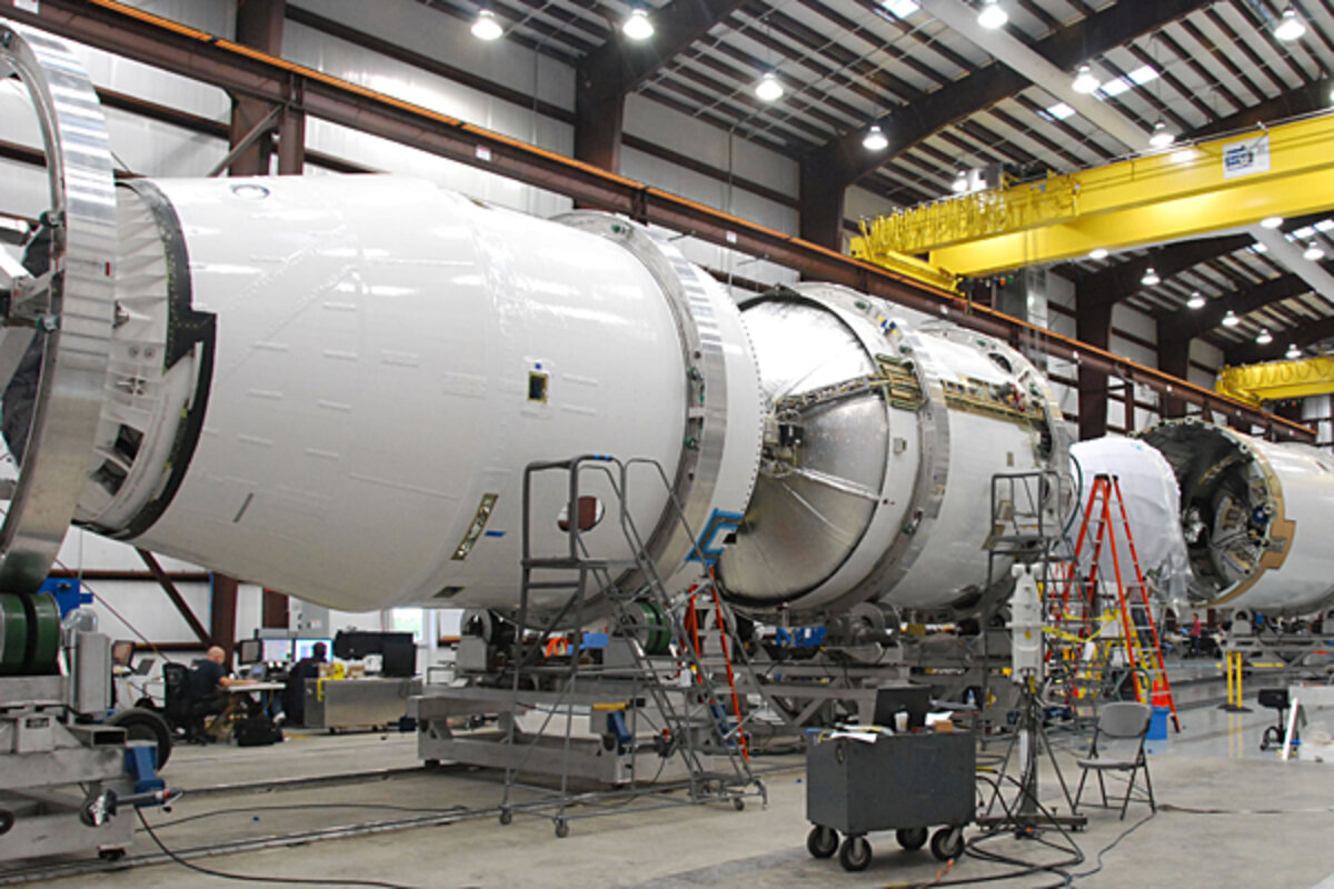 The first , assembled on the SpaceX launch pad at Cape Canaveral Air Force Station in Florida, is awaiting U.S. Air Force approval of its flight termination system, an explosive charge designed to destroy the rocket if it veers off course during launch.