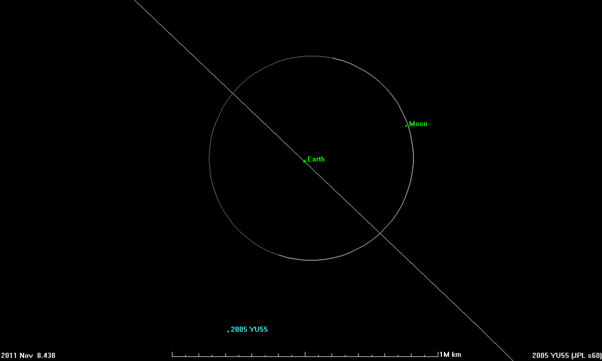"YU55 poses no threat of an Earth collision over, at the very least, the next 100 years," said Don Yeomans, manager of NASA's Near-Earth Object Program Office at JPL. "During its closest approach, its gravitational effect on the Earth will be so minuscule as to be immeasurable. It will not affect the tides or anything else." []