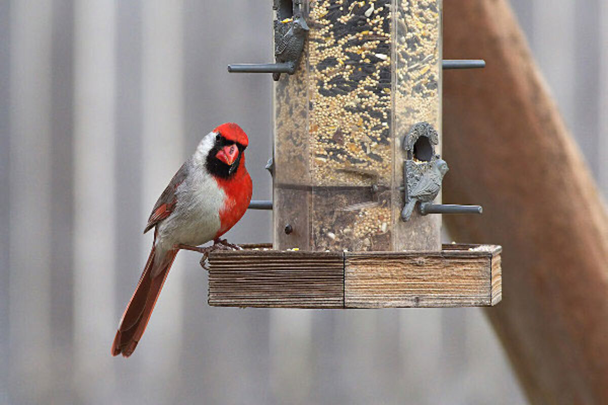 A strange bird showed up in Larry Ammann's backyard on Jan. 14. Clearly a cardinal, it had the bright red plumage of a male on its left side and gray, female feathers on its right.