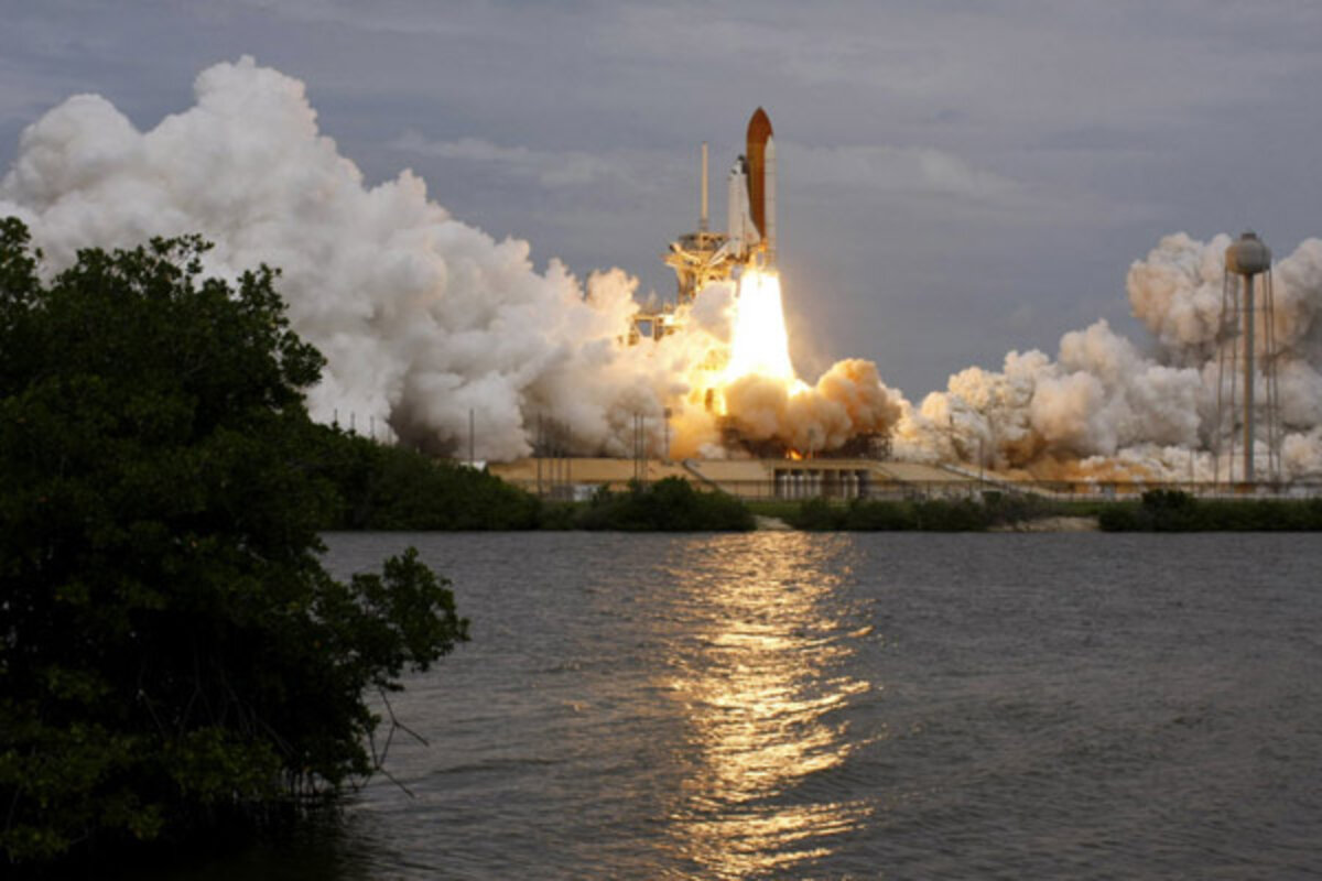 Despite a bleak forecast of thunderstorms and clouds, the shuttle beat the weather in a stunning midday launch, sailing into the sky on one final voyage. The coutndown toward liftoff took a dramatic pause at T minus 31 seconds while ground crews verified that a vent arm at the top of the shuttle was fully retracted. NASA was quickly able to push on toward liftoff.