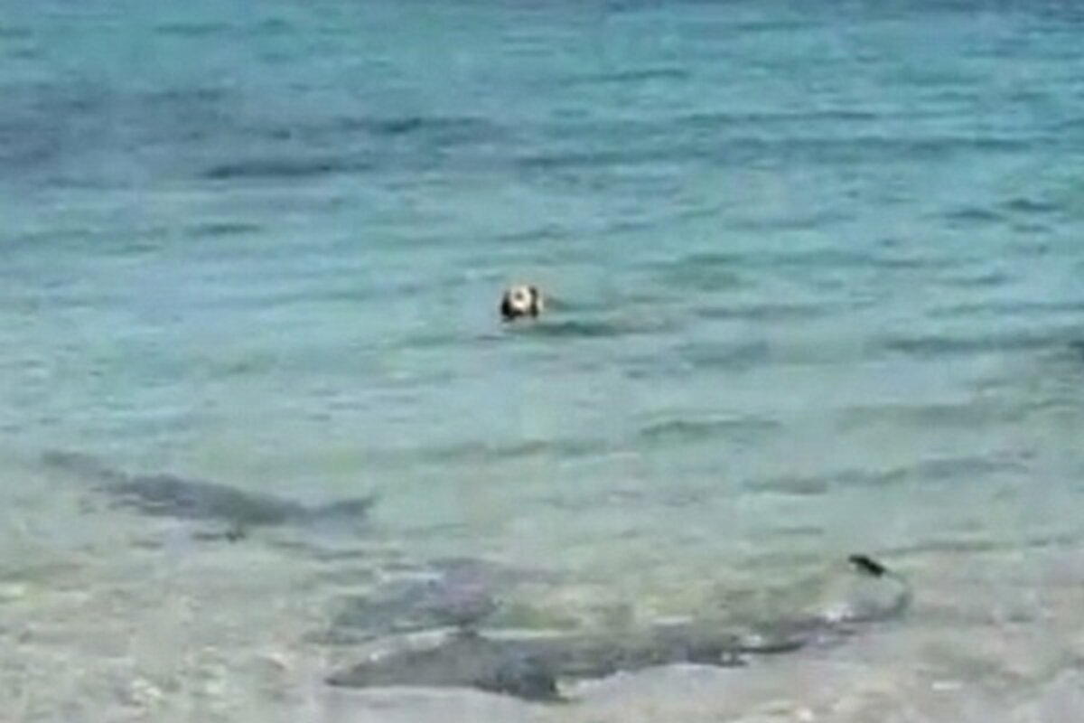 The footage shows two dogs swimming in the ocean near the West Australian town of Broome, about 1,025 miles northeast of Perth.