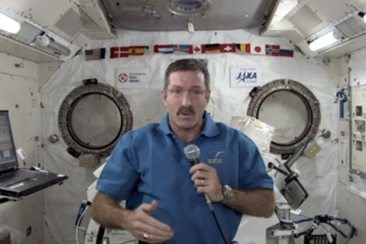 Burbank added that his month in space has been "very busy but wonderful," and that seeing Earth from space is an incredible experience. He described the events of one night in particular, when he looked out and saw聽聽bracketed by city lights on both sides of the Atlantic Ocean.