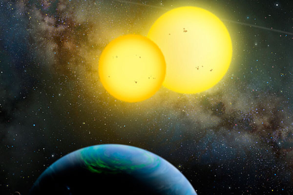 Both newfound twin-sun planets are low-density gas giants located around distant star pairs. []