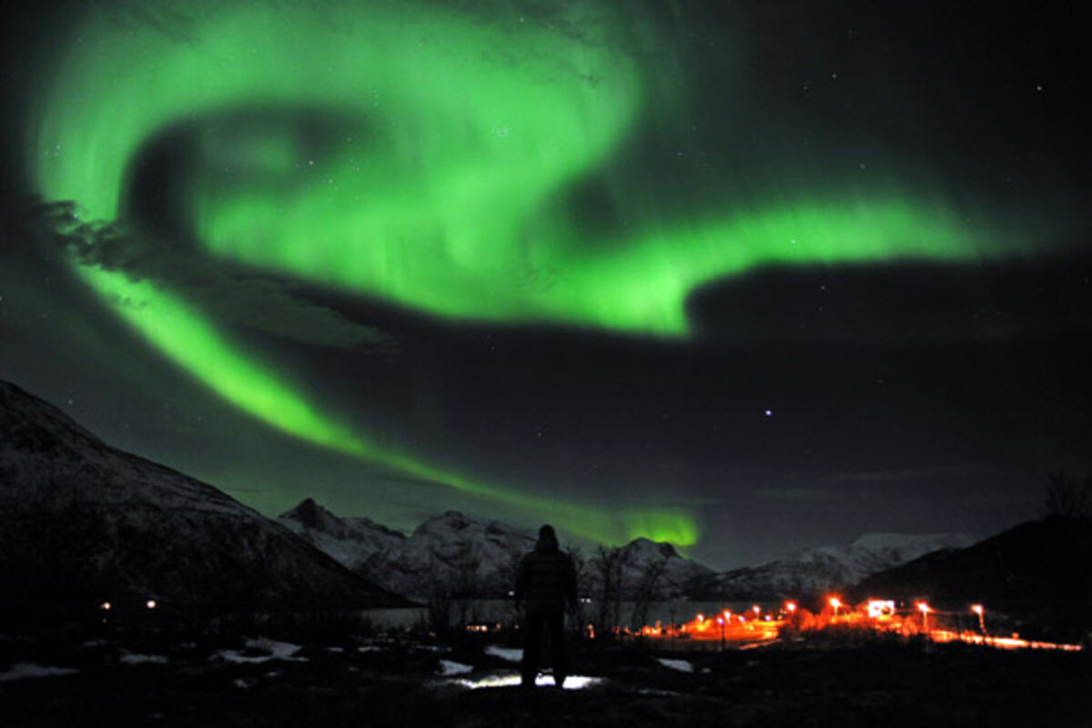 In Muonio, Lapland in Finland, skywatcher and photographer Antii Pietk盲nen made a special snowmobile ride with companion Thomas to try to catch the display. They posted one photo to the skywatching website Spaceweather.com, which received several others from different observers.