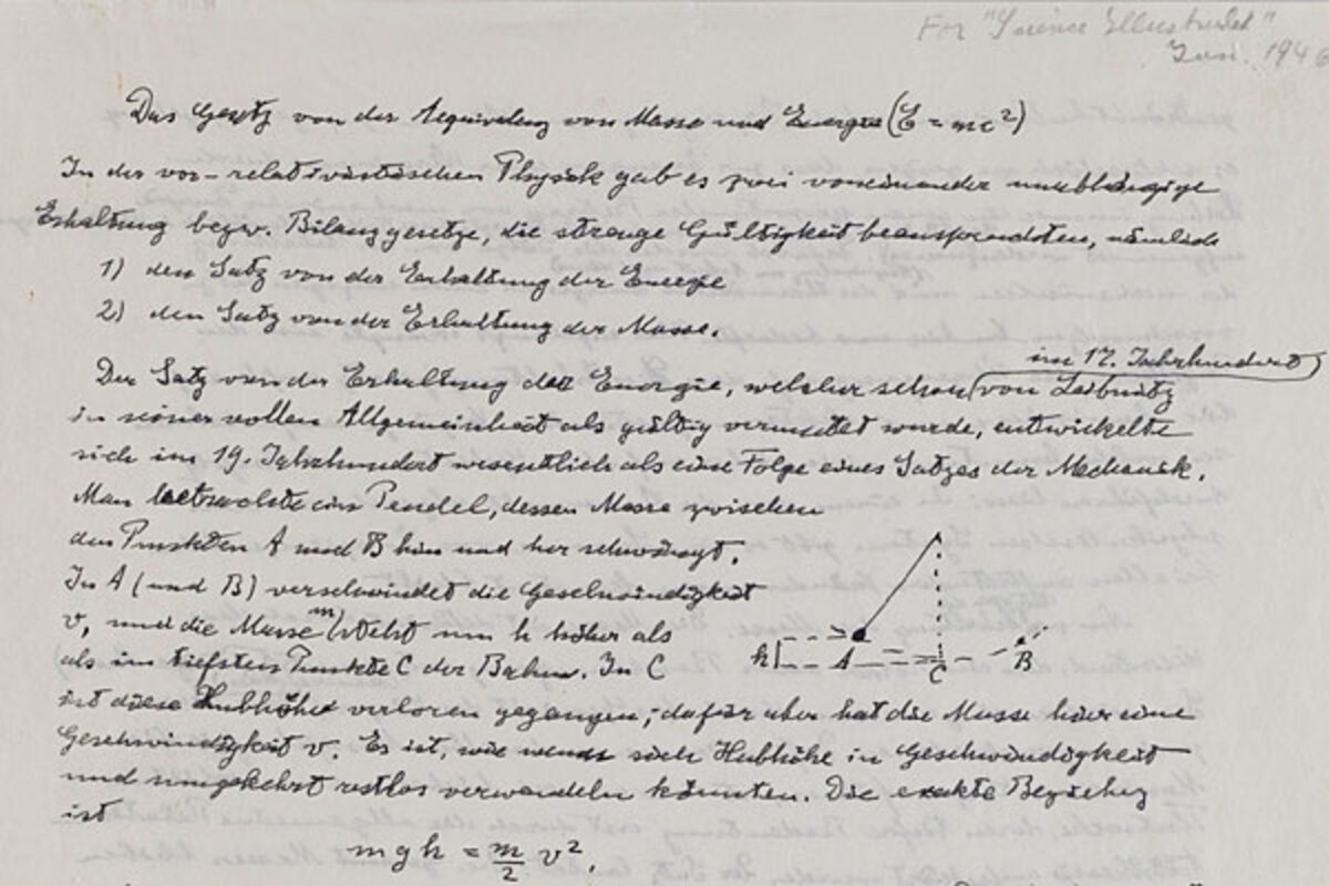 Among items likely to attract popular attention is a very rare manuscript example of the formula the author of the theory of relativity proposed in 1905, E聽=聽mc2 , where energy, E, equals mass times c 鈥 the speed of light in a vacuum 鈥 squared.