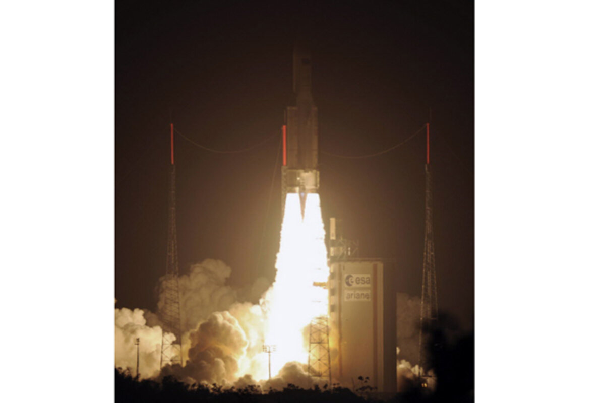 The European Space Agency's third Automated Transfer Vehicle (ATV-3) lifted off at 12:34 a.m. EDT (0434 GMT) atop an Ariane 5 rocket from Europe's spaceport in Kourou, French Guiana. After a brief light show, the rocket slipped through a cloud layer and soared into orbit.