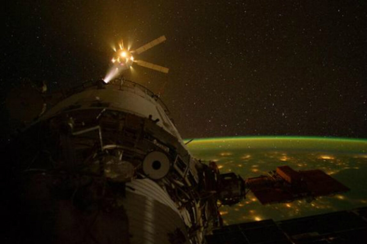 Amazing photo: Cargo vehicle docks with space station over Earth's city lights