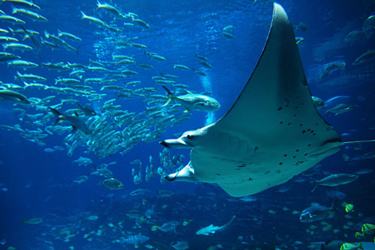 Like and whale sharks, manta rays (Manta birostris) are filter feeders that swim through the water with mouths agape collecting huge gulps of plankton-filled water; they use small finterlike structures called gill rakers in their mouths to filter out the teensy zooplankton.