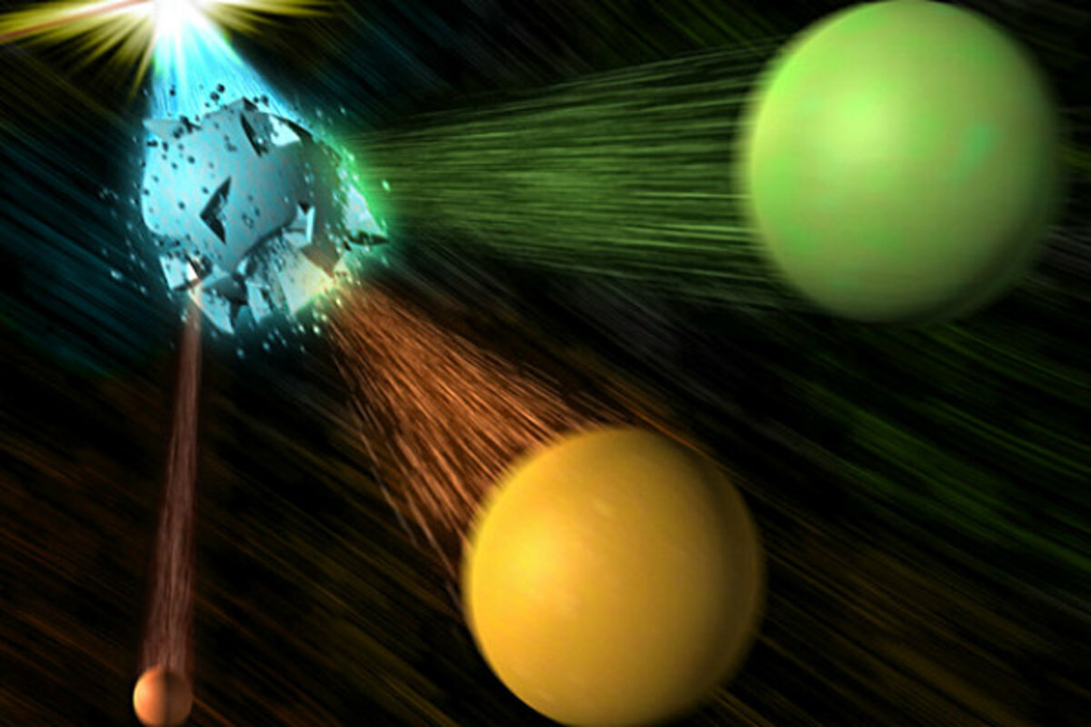 Inside the BaBar experiment听at the SLAC National Accelerator Laboratory in Menlo Park, Calif., researchers observe collisions between electrons and their antimatter partners, positrons (scientists think all matter particles have antimatter counterparts with equal mass but opposite charge). When these particles collide, they explode into energy that converts into new particles. These often include so-called , which are made of both matter and antimatter, specifically a bottom quark and an antiquark. If that wasn't too much of a headache, this process has the impenetrable moniker "B to D-star-tau-nu."