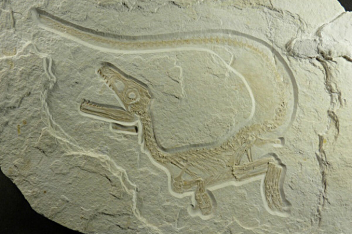 The fossil, of a baby Sciurumimus, was found in Bavaria. Remains of a filamentous plumage were preserved, indicating that the whole body was covered with feathers, the researchers said in a statement. (The slender dinosaur also had a baby face, the researchers noted, with its eyes proportionately much larger than those of adults.)