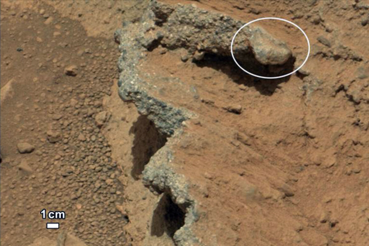 听have revealed several different rocky outcrops that contain stones cemented into a layer of conglomerate rock. Some of these stones are rounded and large, indicating that they were transported relatively long distances across the Red Planet surface by water.