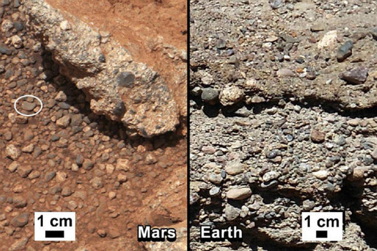Images taken by Curiosity and released on Thursday show rounded stones cemented into the rock, which rises like a piece of jack-hammered sidewalk from the planet's surface.