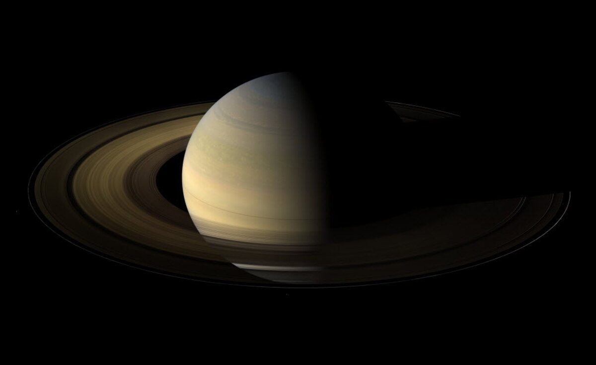 Cassini, which has been dancing around Saturn for nine years, first took a photo of us in September 2006, with Earth an insignificant dot in the upper left of a Saturn-dominated frame. The image was shot with color filters to reproduce the hues that the human eye sees.