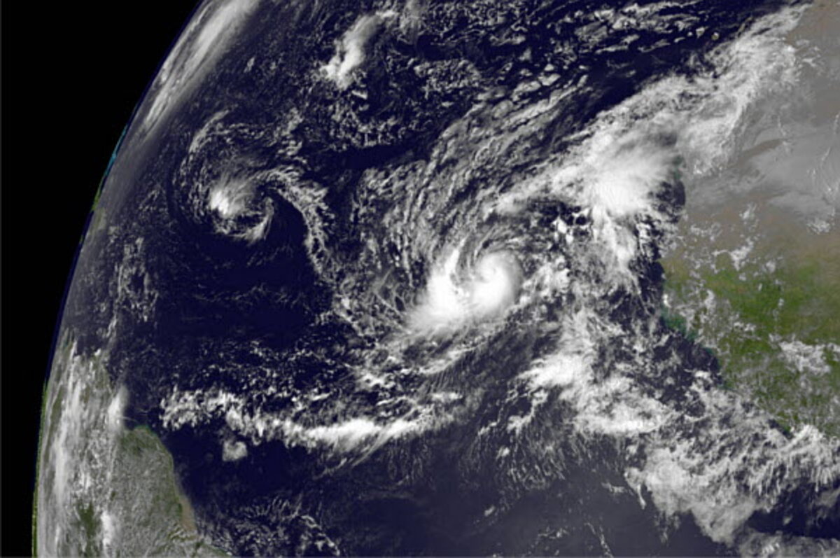 The US National Hurricane Center reports聽tropical storm Gabrielle hit at Bermuda with wind, rain and rough surf late Tuesday as its center headed for a close pass by the wealthy British territory after reforming earlier in the day over the Atlantic. Farther east out in the Atlantic, tropical storm聽Humberto聽was nearly a hurricane as its maximum sustained winds increased to 70 mph (110 kph). It currently poses no threat to land.