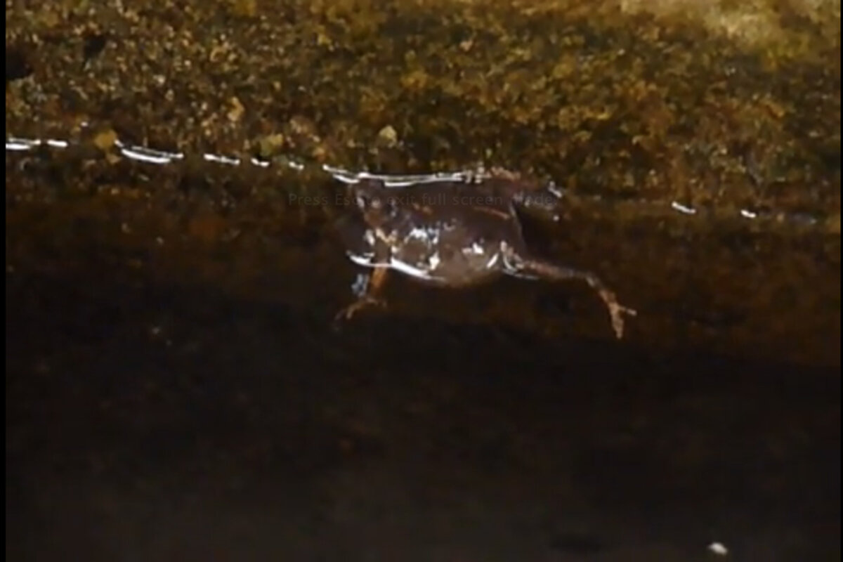 The brownish frogs, measuring less than an inch long, begin their mating calls when the sun sets in the rainforest.