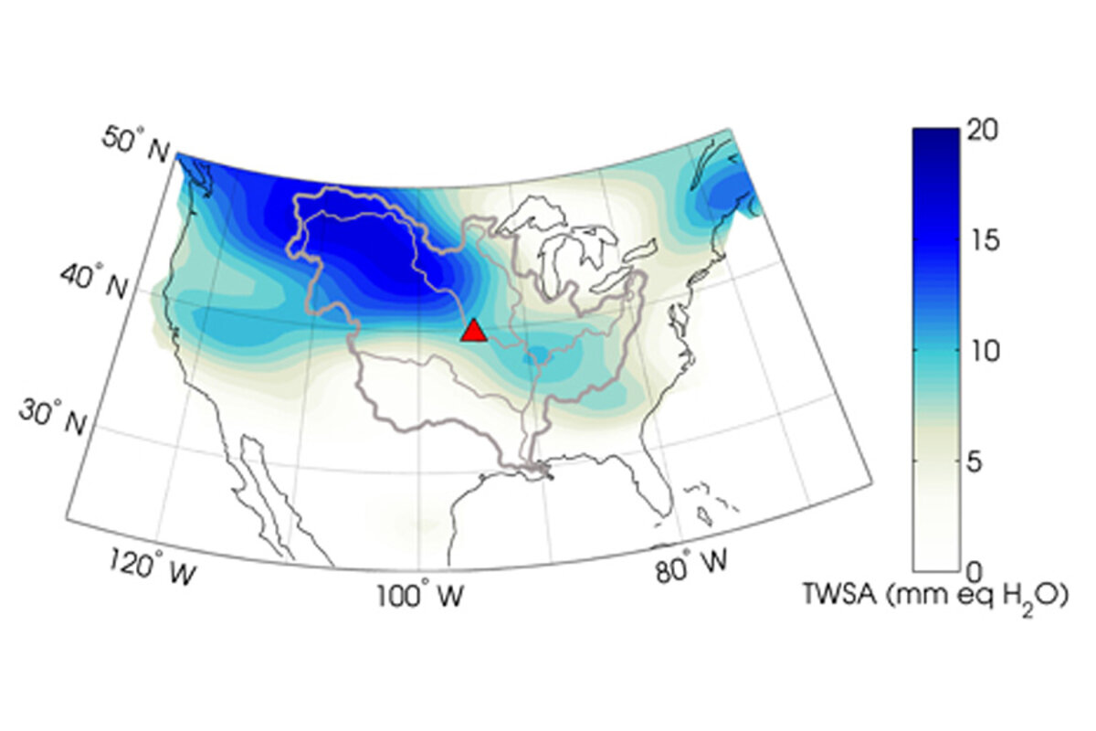 The researchers relied on NASA's twin听听to diagnose a region's flood potential. As the satellites circle the Earth, changes in gravity slightly perturb their orbit. These tugs are proportional to changes in mass, such as a buildup of water and snow. (GRACE was originally designed to track melting in the ice sheets.)