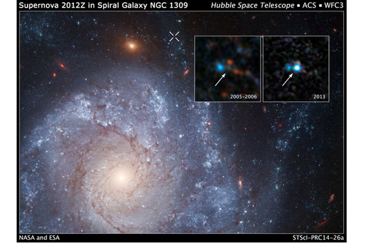 To learn more about white-dwarf supernovas, astronomers looked at an explosion dubbed SN 2012Z, discovered by the Lick Observatory Supernova Search in 2012. NASA's Hubble Space Telescope also took images of the supernova's host galaxy 鈥 NGC 1309, located 110 million light-years away 鈥 in 2005, 2006 and 2010 before the explosion took place. []
