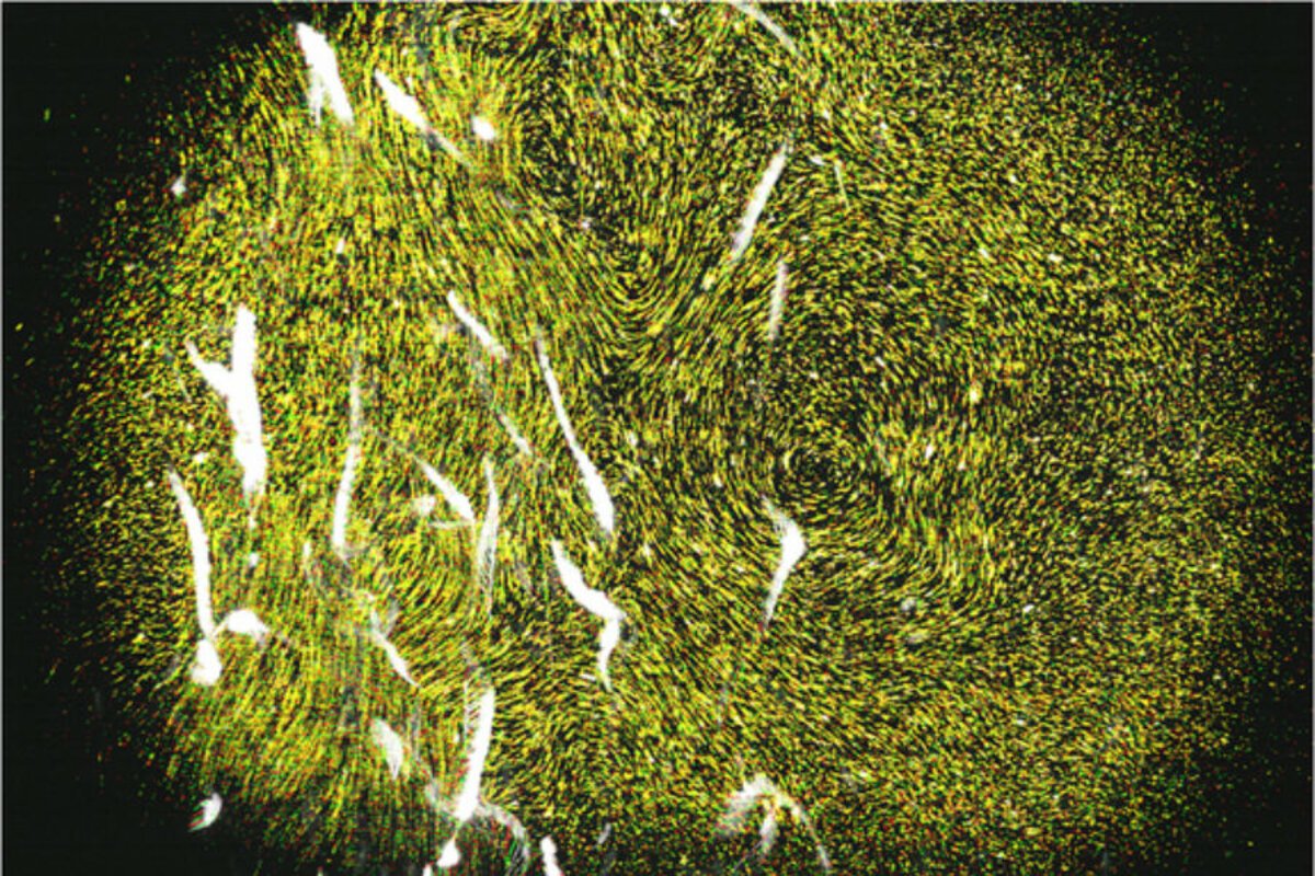 A blue laser that rose from the bottom to the top of the tank triggered upward migration. At the same time, a green laser in the middle of the tank kept the brine shrimp centered in a group, similar to how they stick together in the ocean.