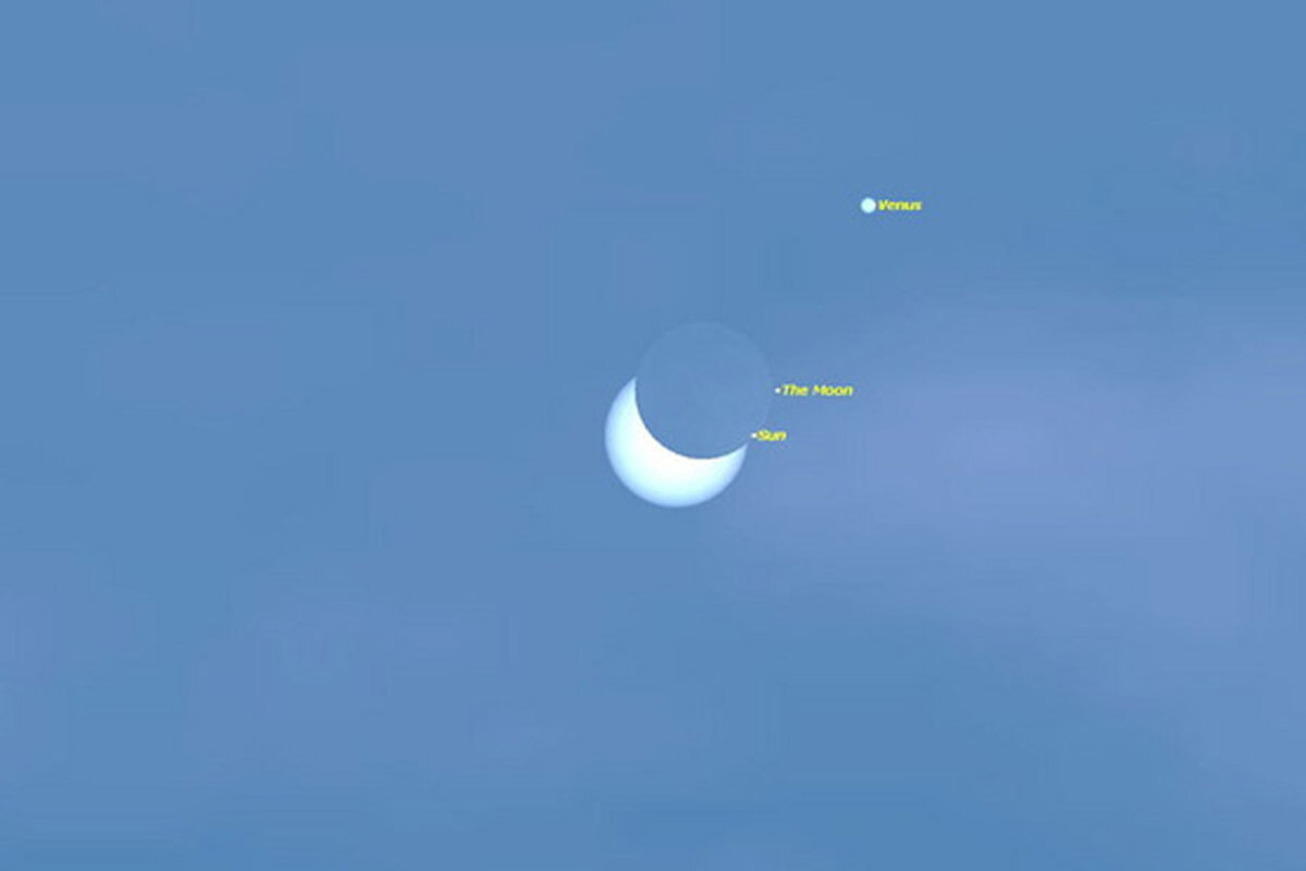 The best views of the eclipse will be in the north, in Alaska and the Canadian arctic, but everyone in North America should see some of it, except in the extreme northeast of the continent. In eastern North America, the eclipse will only be visible near or at sunset, so a low western horizon is essential. Venus is very close to the eclipsed sun, but you will probably need to block the sun from view to spot it. []
