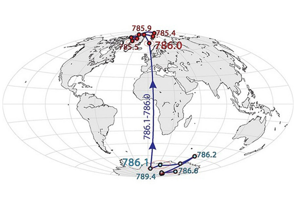 Renne and colleagues then used a technique called argon-argon dating 鈥 which works because radioactive potassium-40 decays into argon-40 at a known rate 鈥 to determine the age of the rock sediment. The layers built up over a 10,000-year period, and the researchers could pinpoint where the poles flipped in the rock layers. The last flip happened around 786,000 years ago.