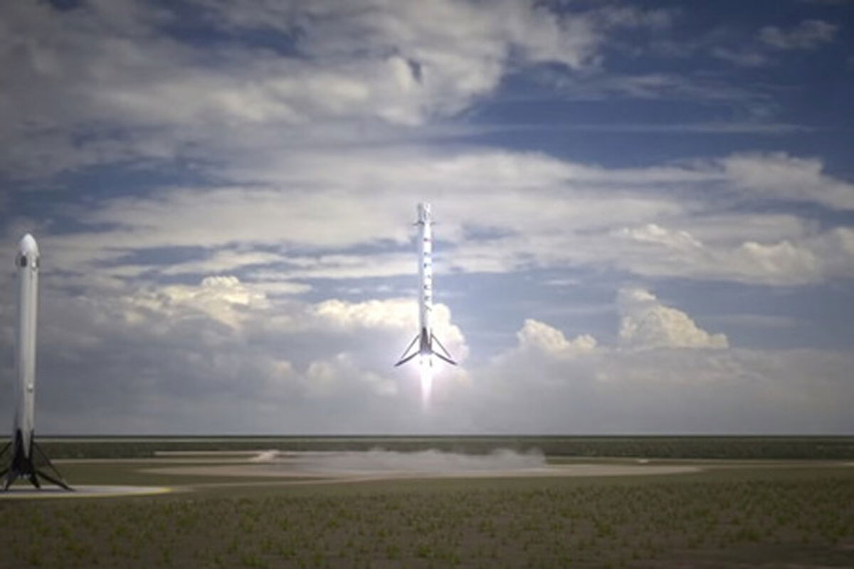 罢丑别听聽shows the spaceflight firm's plans to land the three boosters of its giant rocket back on Earth after launching missions to orbit. The three nine-engine boosters are equivalent to the booster used is used to power the core stage of the Falcon 9 rocket used to launch payloads to space currently. SpaceX representatives expect to start flights of the Falcon 9 Heavy later this year.