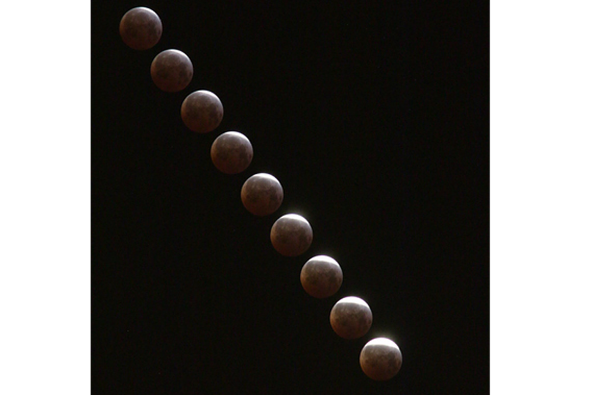 Meanwhile, viewers west of the Mississippi were able to observe the moon for much longer. Veteran skywatcher Maxim Senin created a mesmerizing composit view of the eclipse from Redondo Beach, California. Senin used a feature on his Canon 70D camera that assembled nine different exposures into a single image.