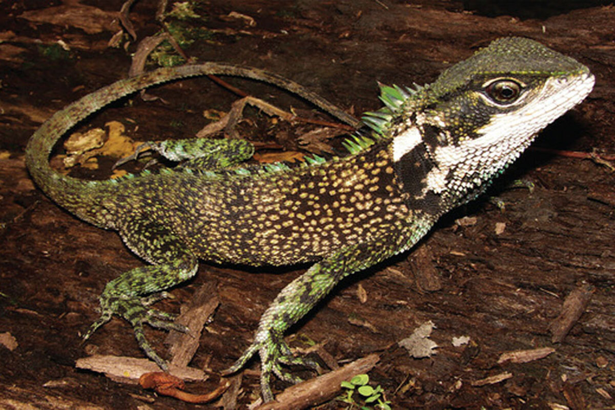 The new woodlizard was discovered in the upper basin of the Huallaga River at 4,921 feet (1,500 meters) elevation in northern Peru. It has a greenish-black back with olive flecks, and a conspicuous white patch on its throat. Huge scales trail down its spine.