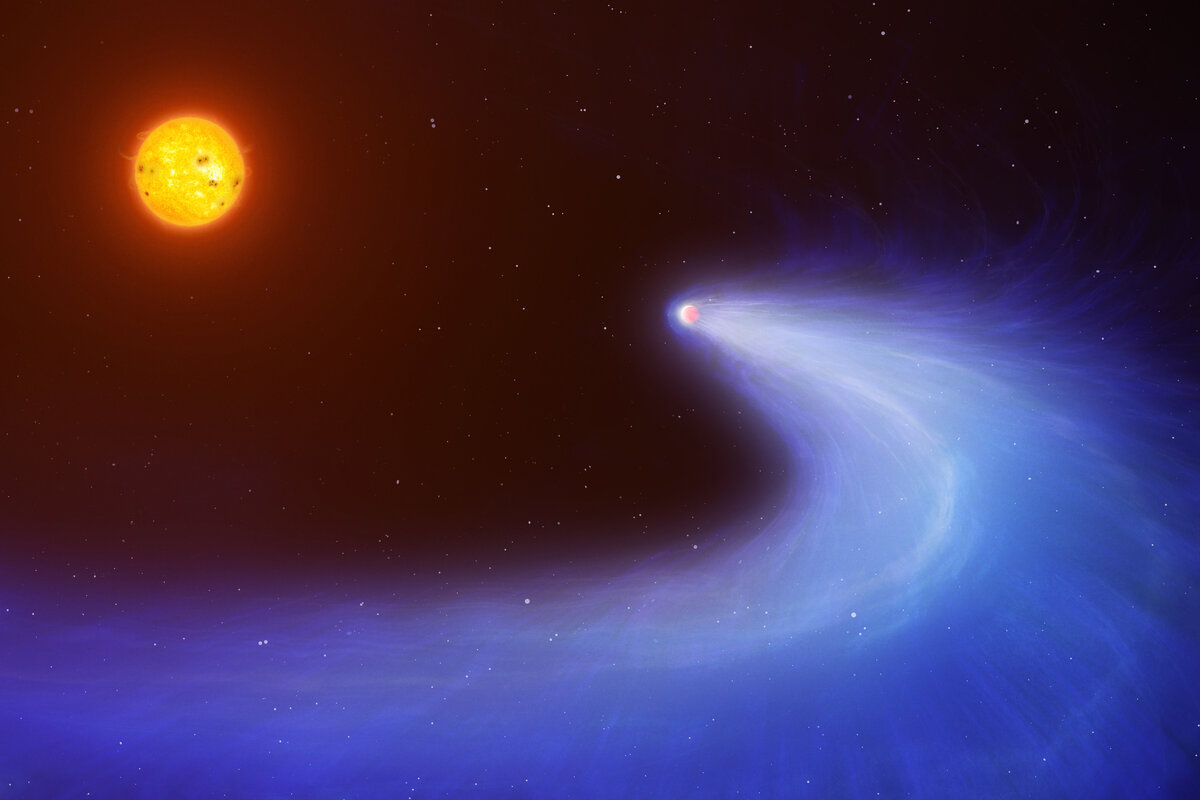 “The cloud forms a comet-like tail as a result of ultraviolet light coming from the star pushing on the hydrogen and causing it to spiral outwards,” co-author Peter Wheatley said in a .