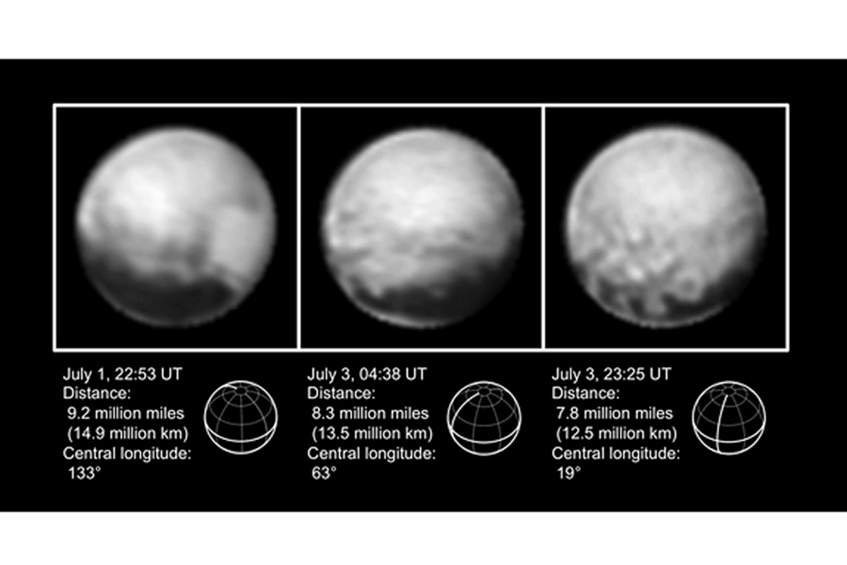 The images reveal a great deal of variation and complexity across Pluto's surface 鈥 including the four large dark patches near the equator first spotted by聽聽late last month.