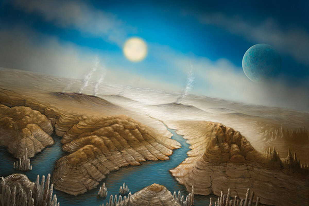 The illustration shows "not oceans, but residual bodies of water that are highly concentrated in minerals after the oceans are largely gone, and you have lakes and pools and rivers left," Jenkins said.聽