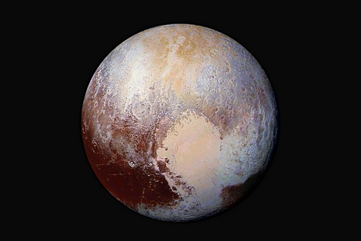 The mysterious face of Pluto is beginning to yield some of its secrets in this stunning false-color image from NASA's New Horizons spacecraft, which scientists can use to detect subtle differences in the dwarf planet's surface, including its icy "heart."