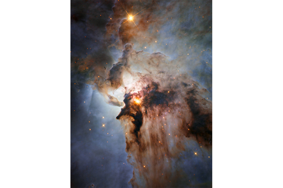 A vast, star-forming region within the Sagittarius constellation, the Lagoon Nebula, also known as Messier 8, spans a region and appears to the naked eye as in the sky. This photo provides an up-close look at the nebula鈥檚 stormy center, revealing winds from hot stars, funnels of gas, and various star formations within a haze of gas and dust.
