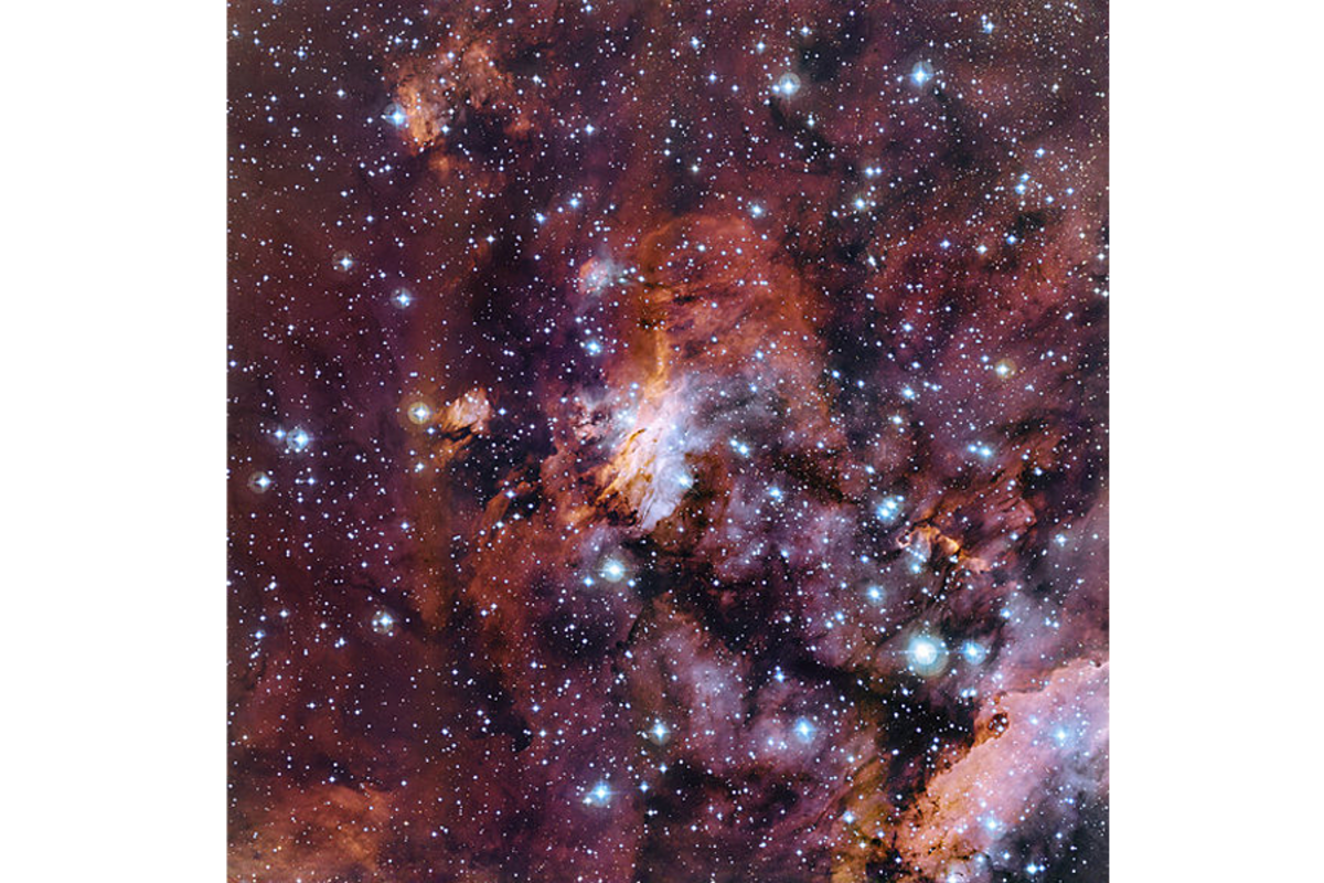 The 2.2-meter telescope at the European Southern Obsevatory's La Silla Observatory in Chile snapped a choice section of the reddish nebula studded by young blue stars in a newly released image. The nebula, also called Gum 56 and IC 4628, is hard to see with the naked eye although it's around 250 light-years across 鈥 it is very faint, and mostly emits light at wavelengths not visible to humans.