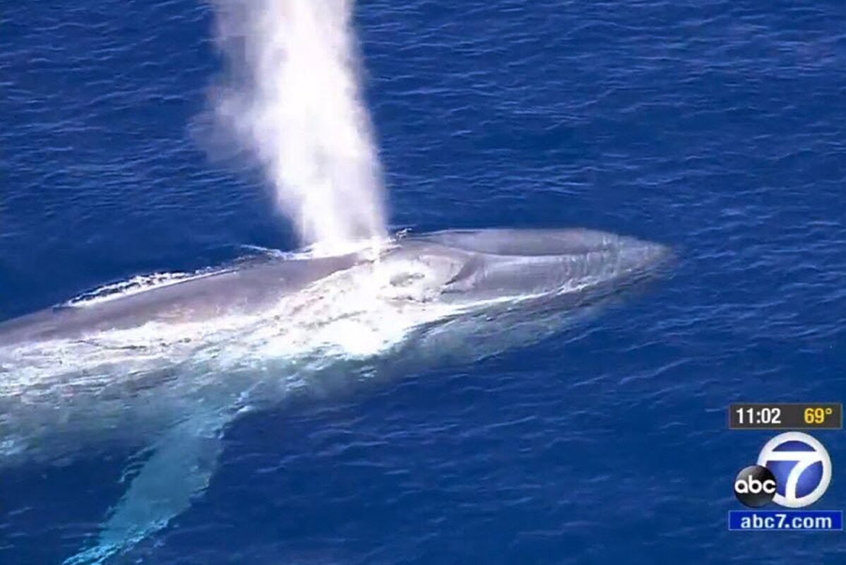 The聽whale聽was estimated to be 80 feet long, twice the size of the average city bus. It was spotted Friday in the channel between Santa Catalina Island and the mainland.