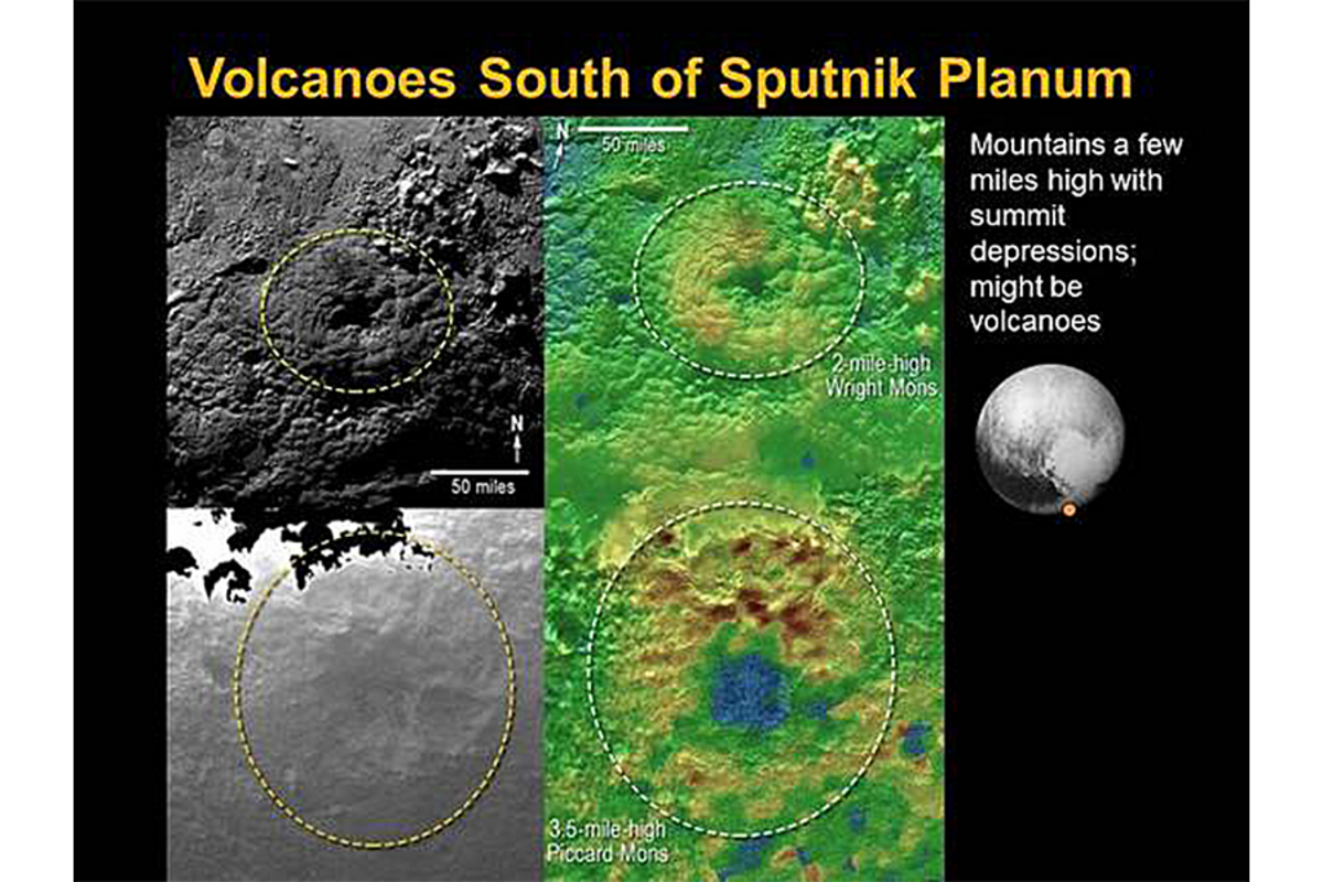 Although the features bear a strong similarity to volcanoes, New Horizons researcher Jeff Moore, of NASA Ames Research Field, said in an earlier session that they were not yet ready to conclusively pronounce that there is evidence for cryovolcanism on Pluto.