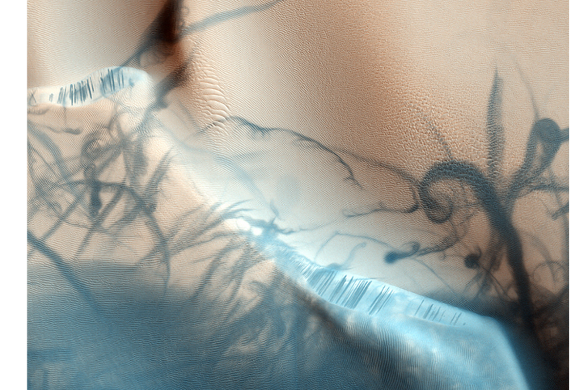 When dust devils vacuum up a thin layer of dust from the ground in their path, they leave darkened streaks. When those dark splotches become more numerous over a region, they can change the way sunlight reflects off Mars鈥檚 surface.听