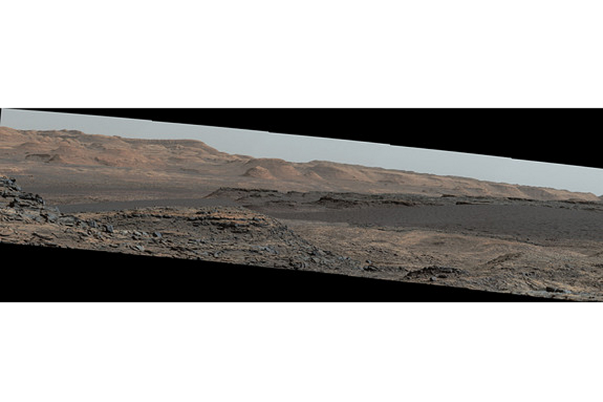 The 3.4-mile-high (5.5 kilometers) Mount Sharp rises from the center of Gale Crater. Curiosity reached the mountain's base in September 2014 after a 14-month drive, and the rover is now working its way slowly up the mountain, reading a history of Mars' changing environmental conditions in the rocks as it goes.