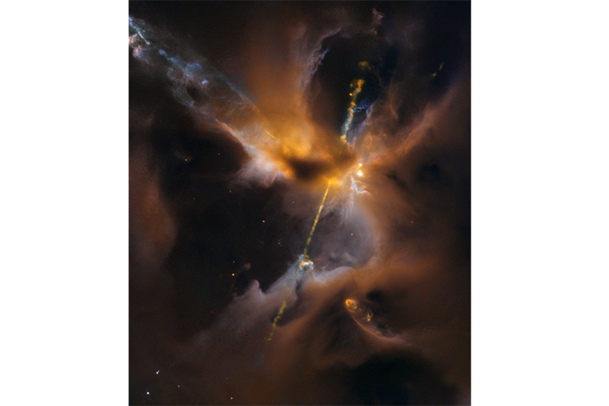 These interstellar light beams are called Herbig鈥揌aro (HH) objects. The one shown in today鈥檚 Hubble image is dubbed HH 24.