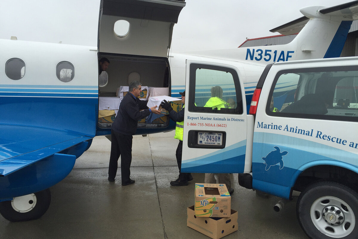 Rescuers working to save sea turtles stranded in cold northern waters have employed cars, trucks, and even planes to fly the turtles south for the winter.