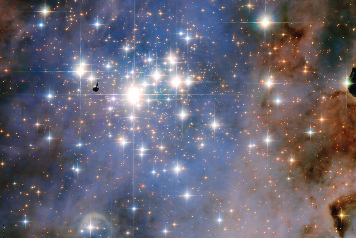 The stars of the Trumpler 14 star cluster are some of the most luminous in the galaxy, and their abnormally hot temperatures and close proximity illuminates space to a degree rarely seen. The Hubble Space Telescope , 鈥渄azzling diamonds.鈥