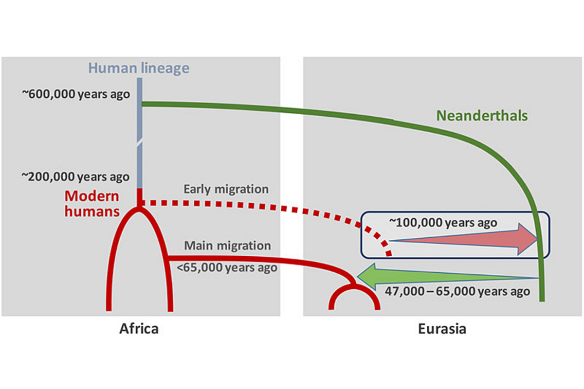 But here's the catch: Homo sapiens supposedly didn't trek out of Africa until around 60,000 years ago. And Neanderthal DNA appears in living modern humans with heritage from every part of the world except Africa, suggesting the groups did not mix until they left the continent.