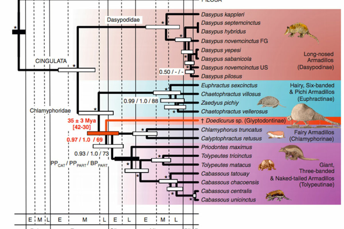 Doedicurus, Tolypeutinae and Chlamyphorinae (fairy armadillos), diverged from a common ancestor around 35 million years ago, according to the DNA analysis.聽