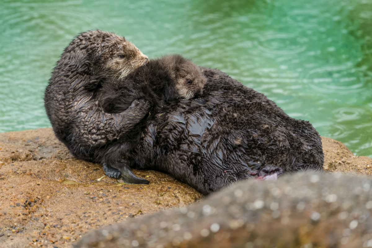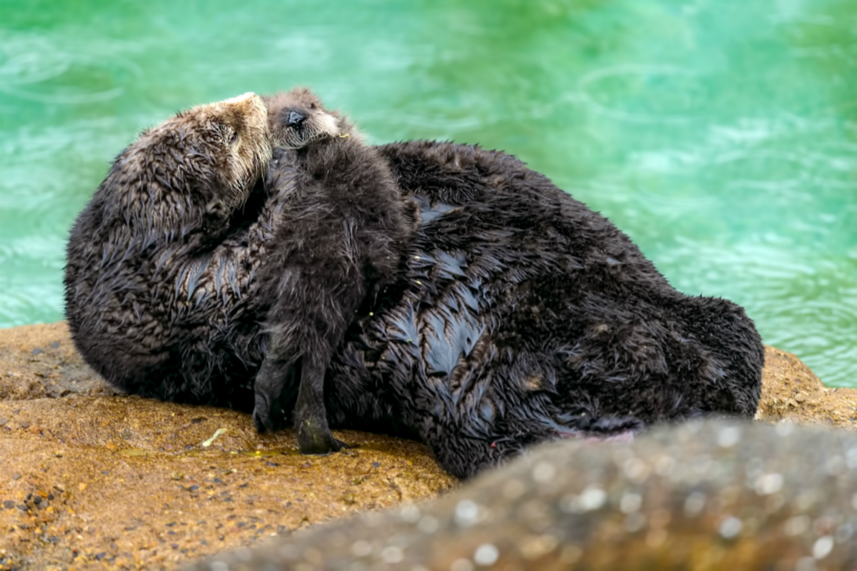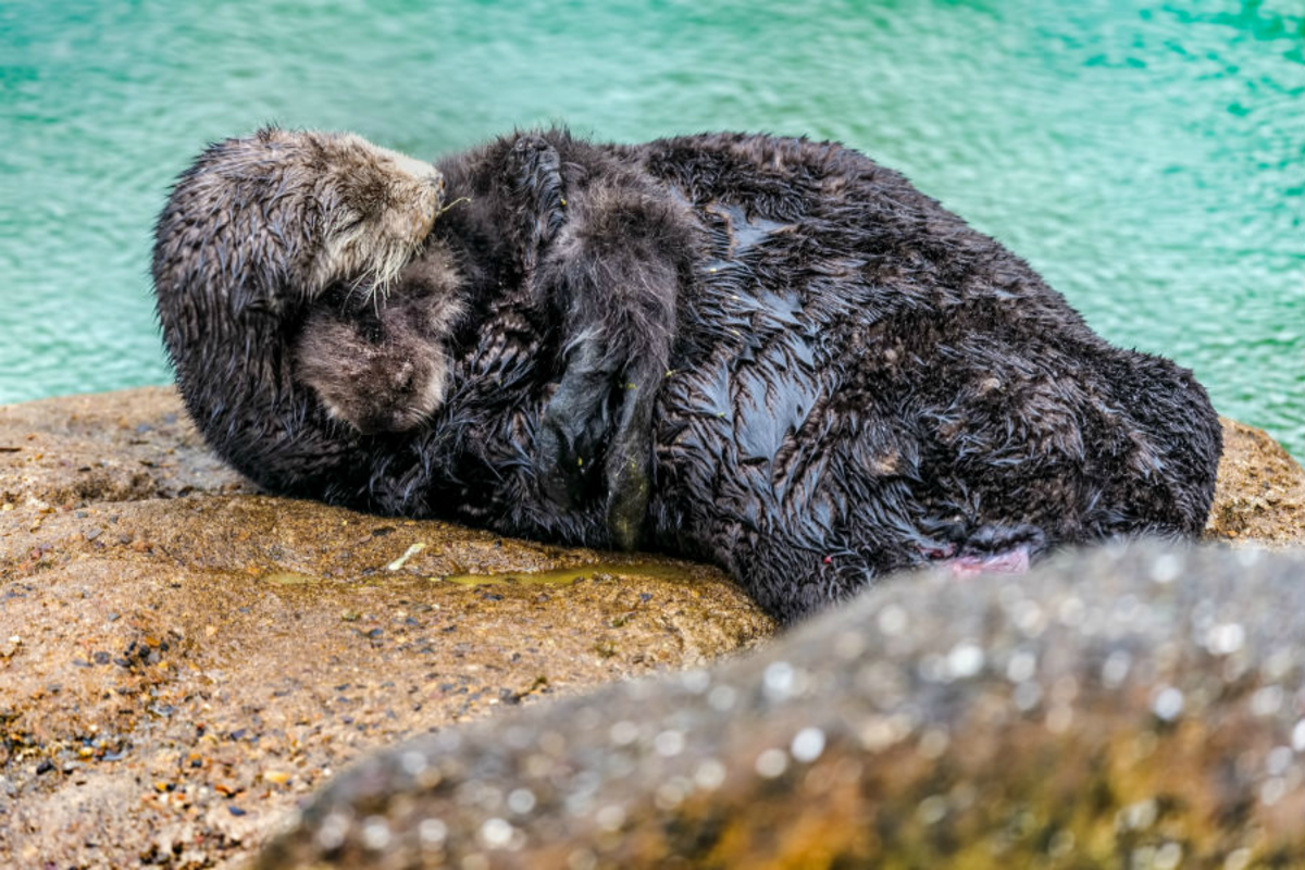 The otter mom will , carrying the baby on her chest until it鈥檚 about two months old. She鈥檒l also spend hours a day grooming the pup鈥檚 coat to keep it waterproof and fluffy.
