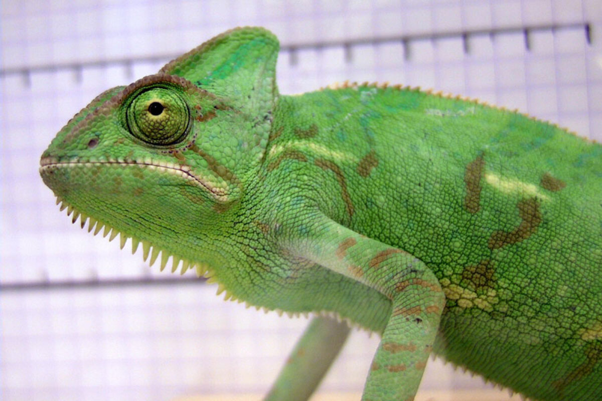 Damman and his colleagues measured the viscosity of the mucus from the tongues of veiled chameleons, Chamaeleo calyptratus, to see if it was sticky enough to ensnare the large meals these lizards munch on. And they found that the chameleons' spit was a strong enough glue to pick up prey that scientists have previously reported can be 30 percent of its own body mass.